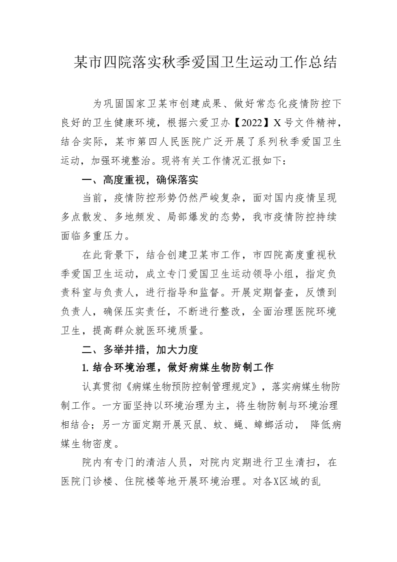 / 市四院落实秋季爱国卫生运动工作总结