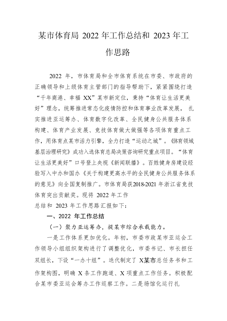 / 市体育局2022年工作总结和2023年工作思路