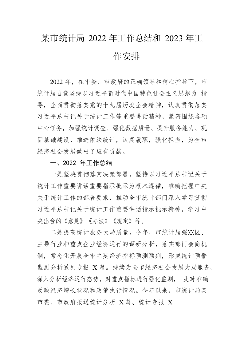 / 市统计局2022年工作总结和2023年工作安排