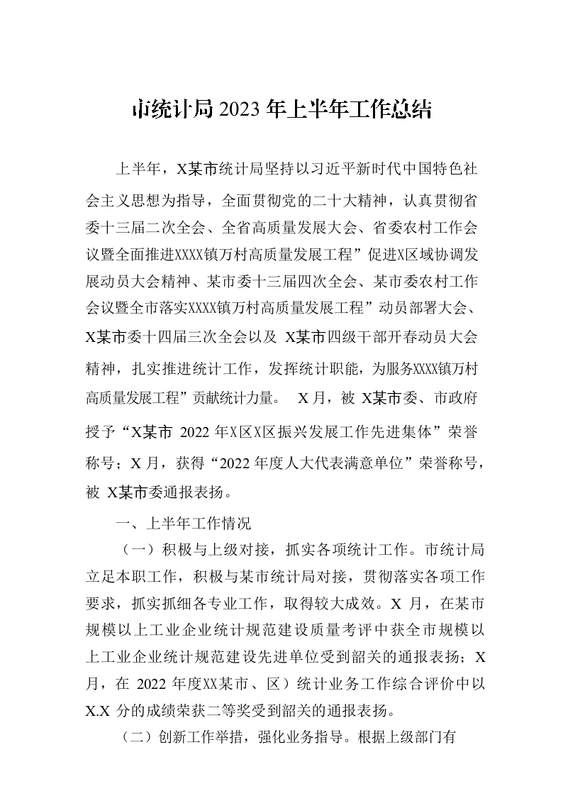 / 市统计局2023年上半年工作总结(20230706)