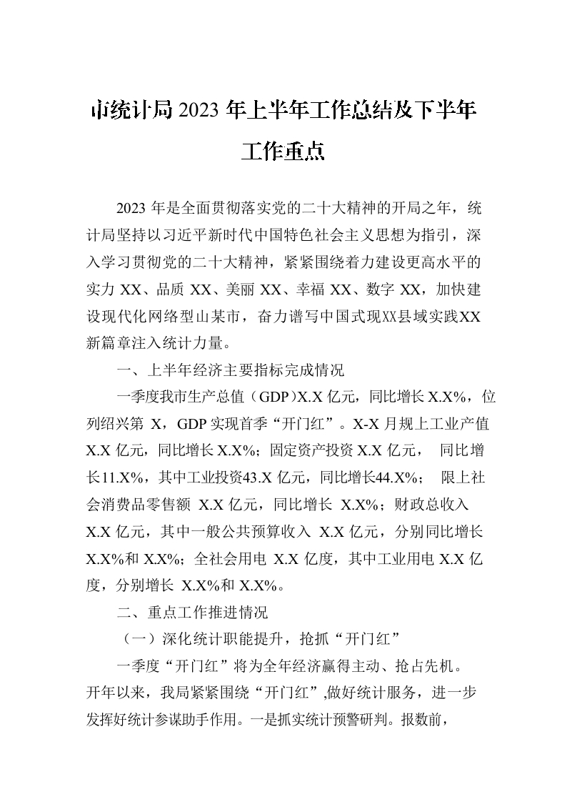 / 市统计局2023年上半年工作总结及下半年工作重点(20230704)