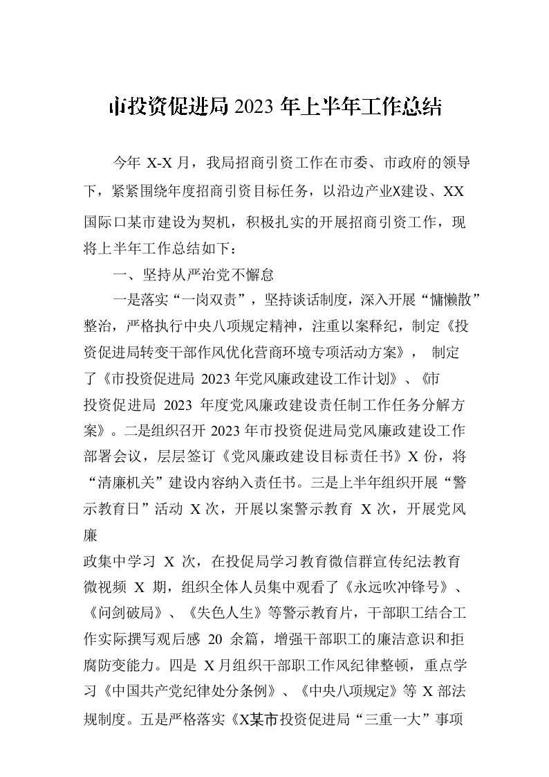 / 市投资促进局2023年上半年工作总结(20230705)