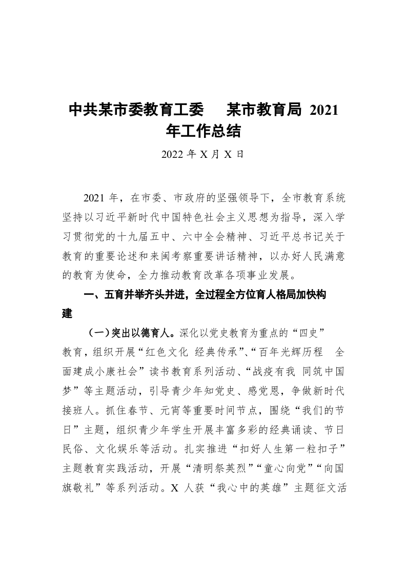 / 市委教育工委 莆田市教育局2021年工作总结(20220408)