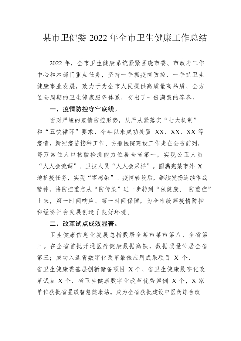 / 市卫健委2022年全市卫生健康工作总结