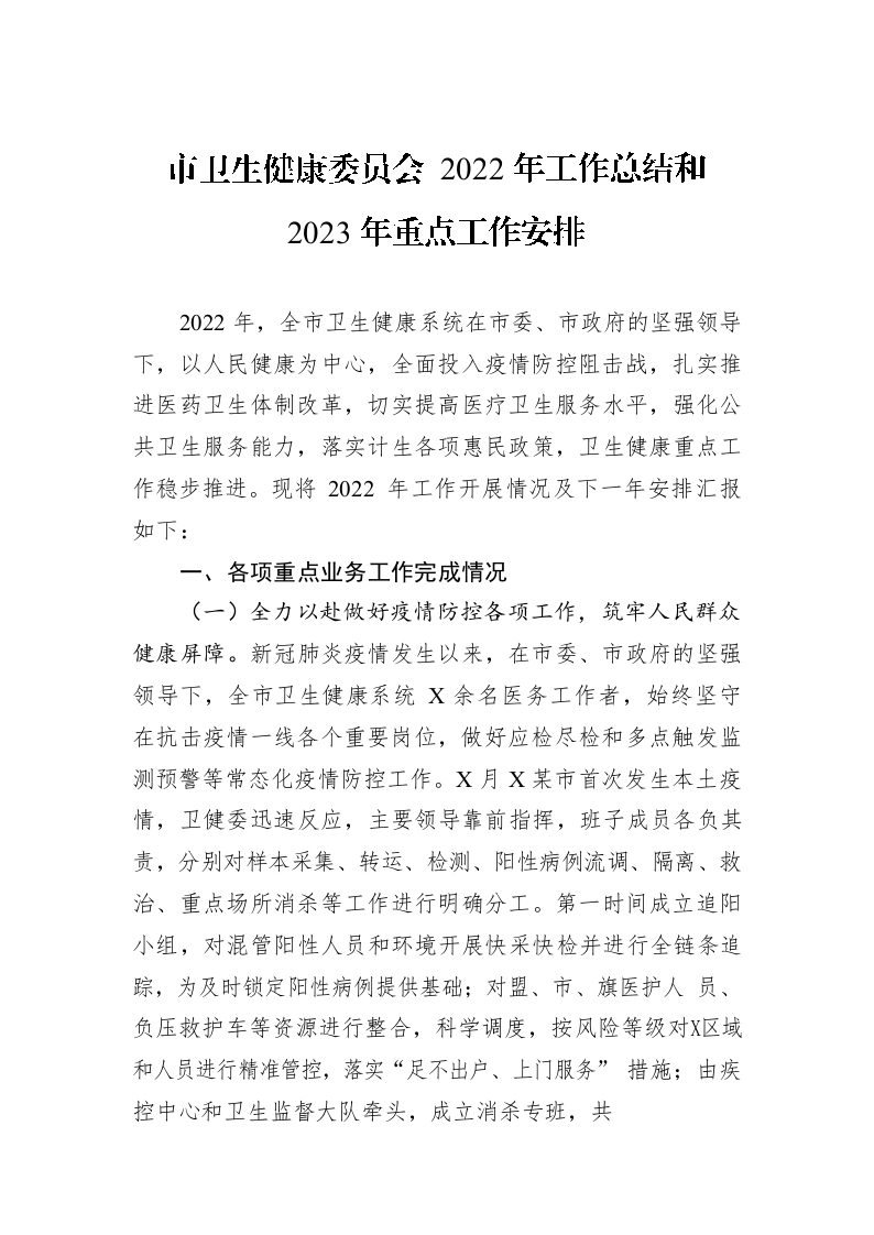 / 市卫生健康委员会 2022年工作总结和2023年重点工作安排