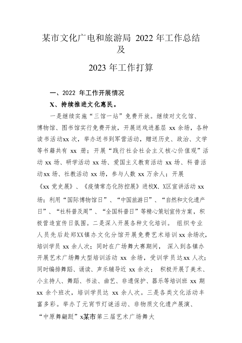 / 市文化广电和旅游局2022年工作总结及2023年工作打算