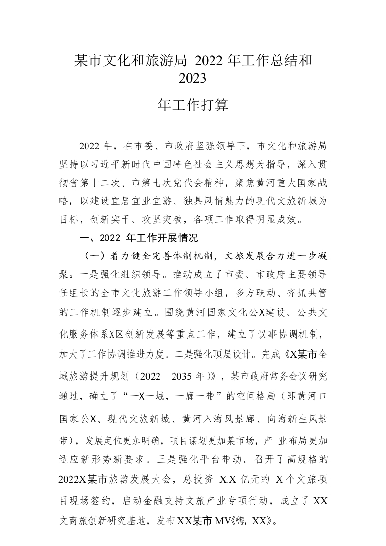 / 市文化和旅游局2022年工作总结和2023年工作打算