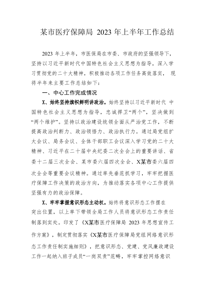 / 市医疗保障局2023年上半年工作总结(20230609)