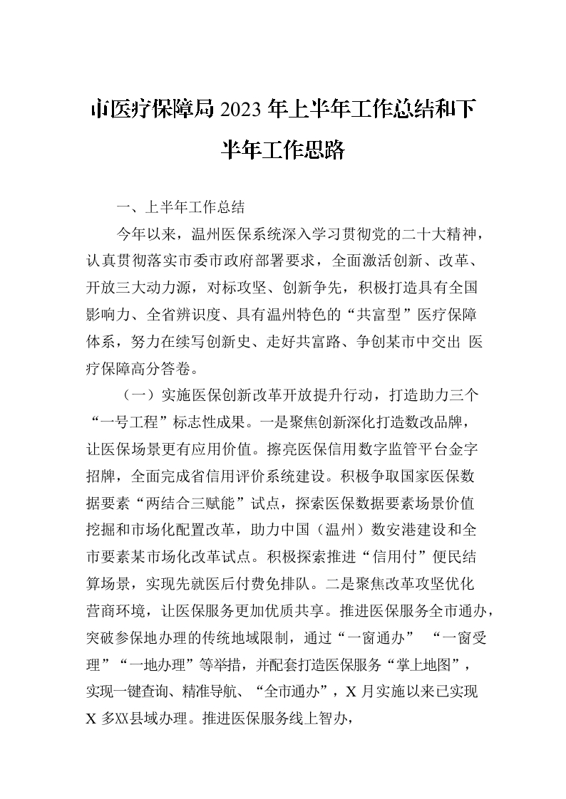 / 市医疗保障局2023年上半年工作总结和下半年工作思路(20230706)