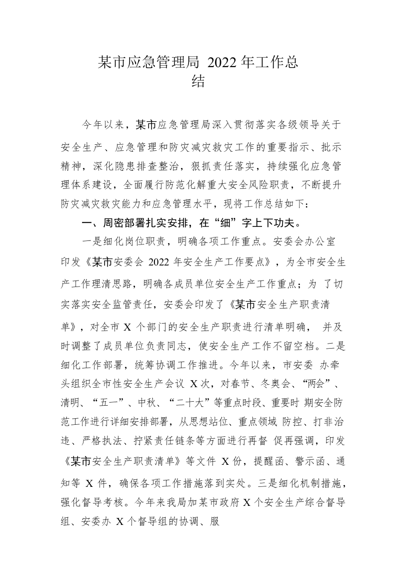 / 市应急管理局2022年工作总结