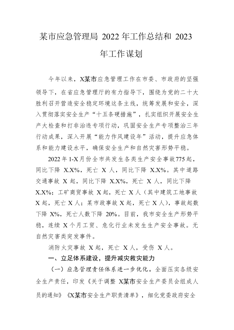 / 市应急管理局2022年工作总结和2023年工作谋划