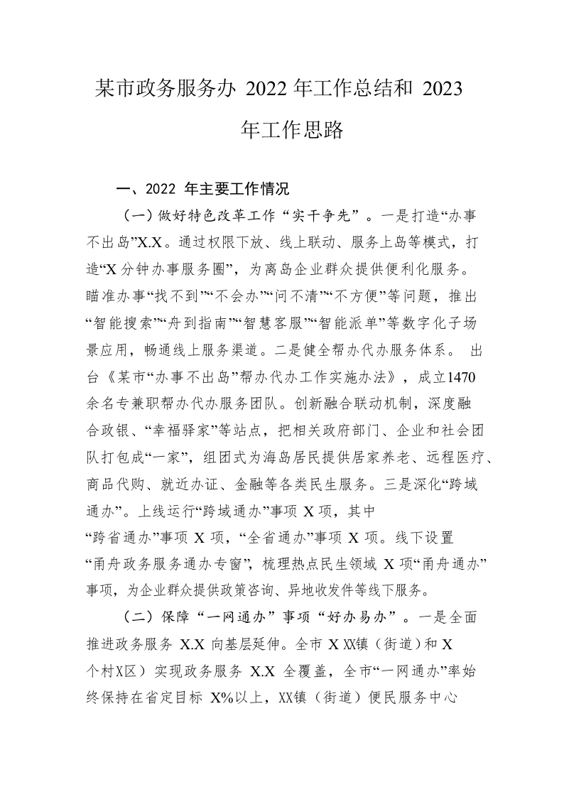/ 市政务服务办2022年工作总结和2023年工作思路