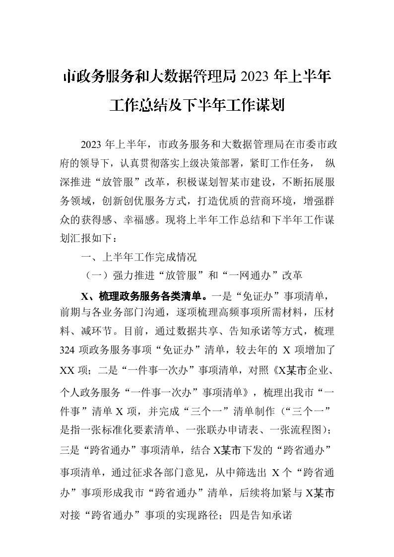 / 市政务服务和大数据管理局2023年上半年工作总结及下半年工作谋划