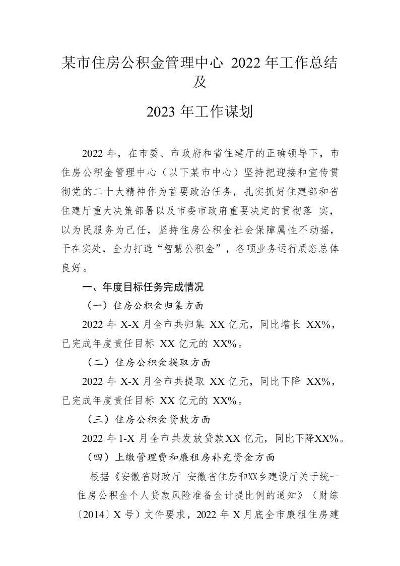 / 市住房公积金管理中心2022年工作总结及2023年工作谋划