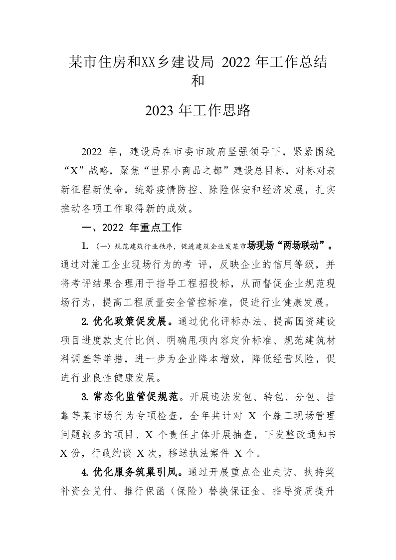 / 市住房和城乡建设局2022年工作总结和2023年工作思路