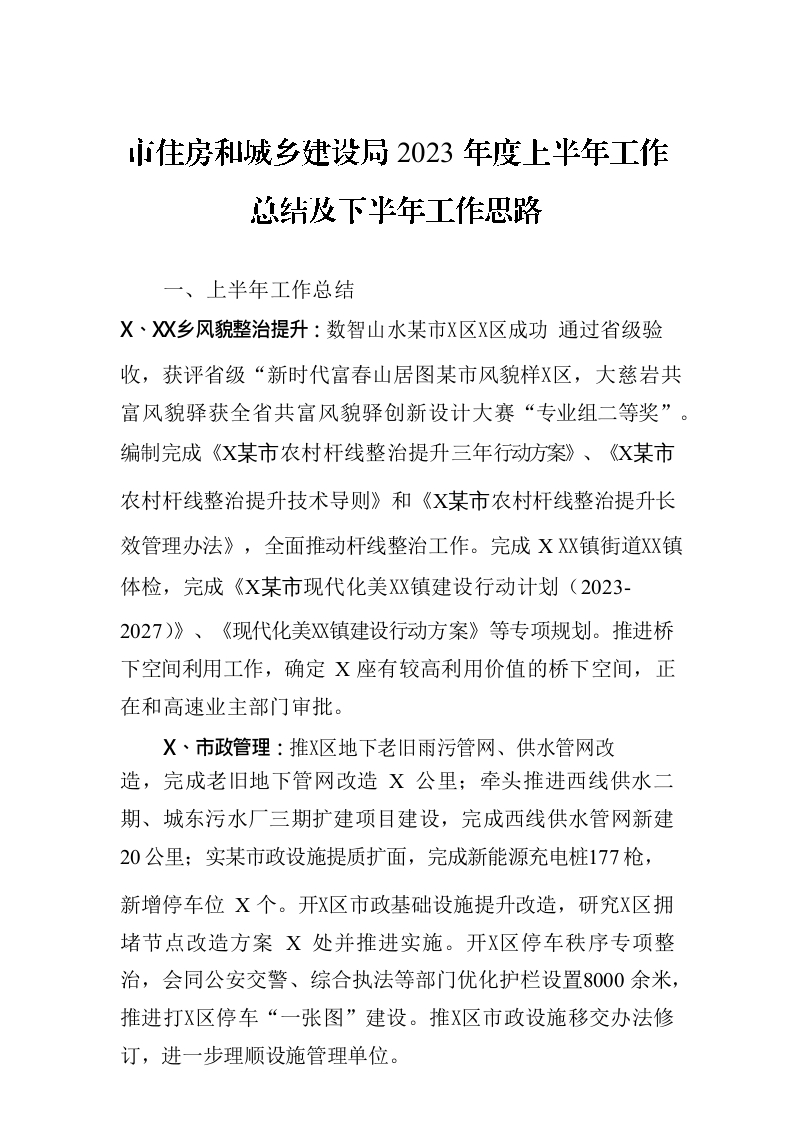 / 市住房和城乡建设局2023年度上半年工作总结及下半年工作思路(20230629)