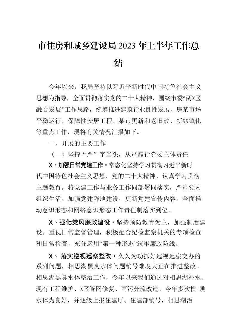 / 市住房和城乡建设局2023年上半年工作总结(20230630)