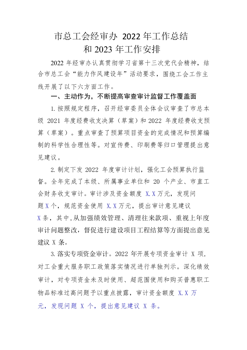 / 市总工会经审办2022年工作总结2023年工作安排