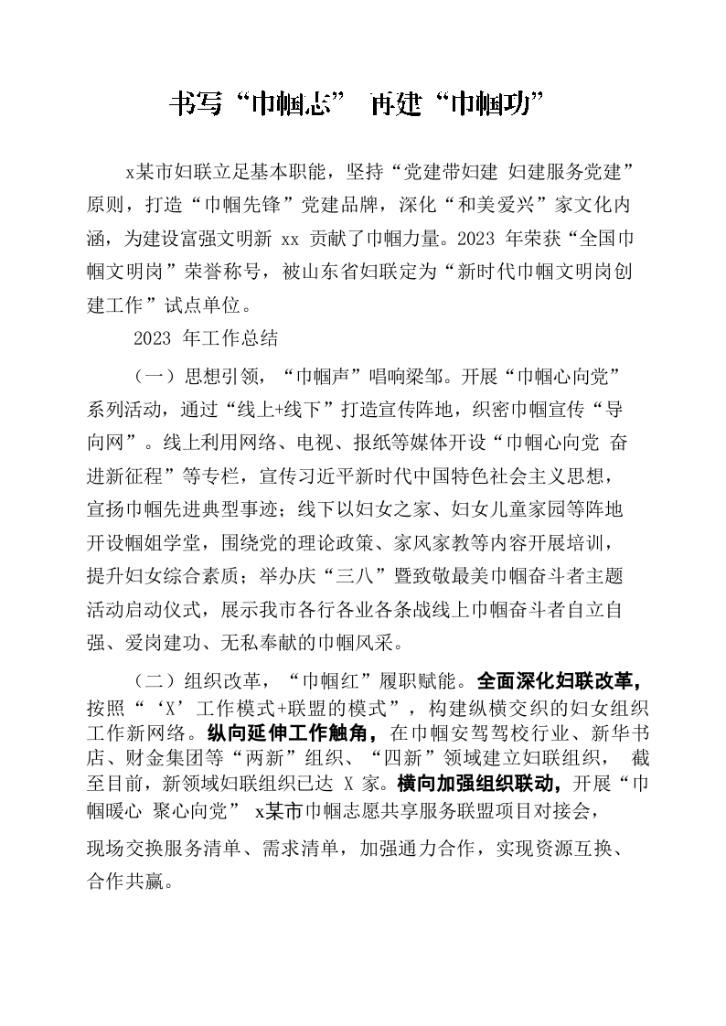 / 书写“巾帼志” 再建“巾帼功”--妇联工作总结