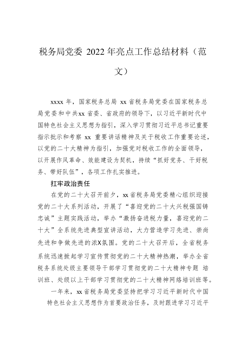 / 税务局党委2022年亮点工作总结材料(范文)