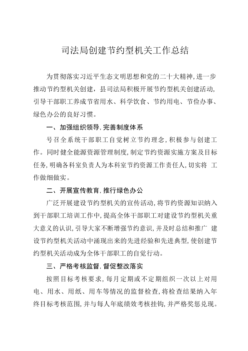 / 司法局创建节约型机关工作总结