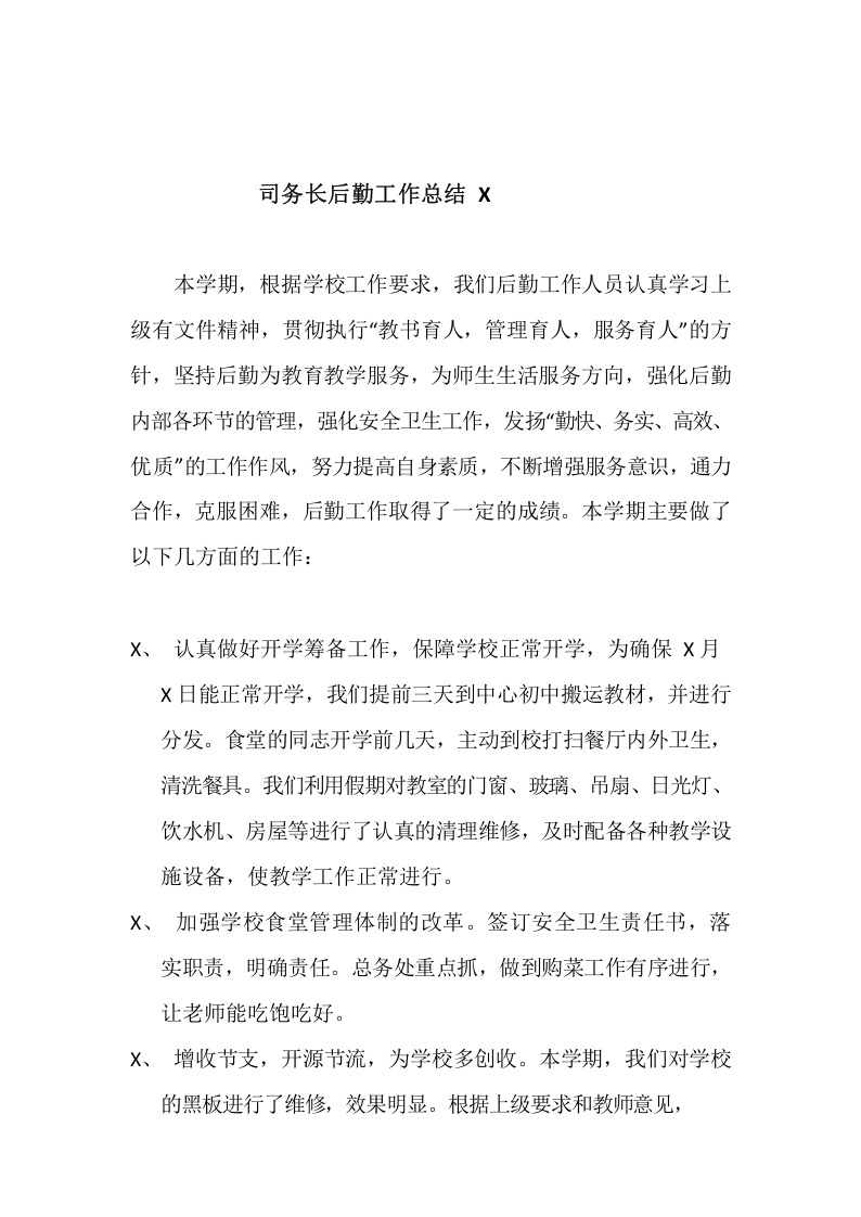 / 司务长后勤工作总结