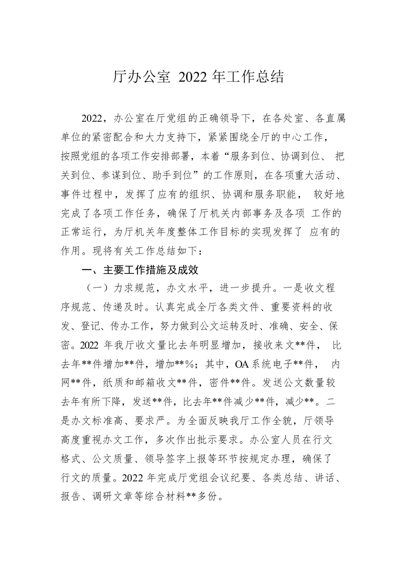 / 厅办公室2022年工作总结