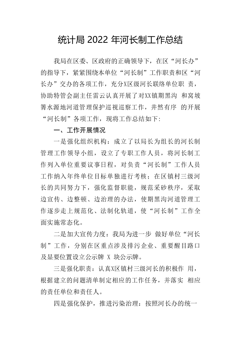 / 统计局2022年河长制工作总结