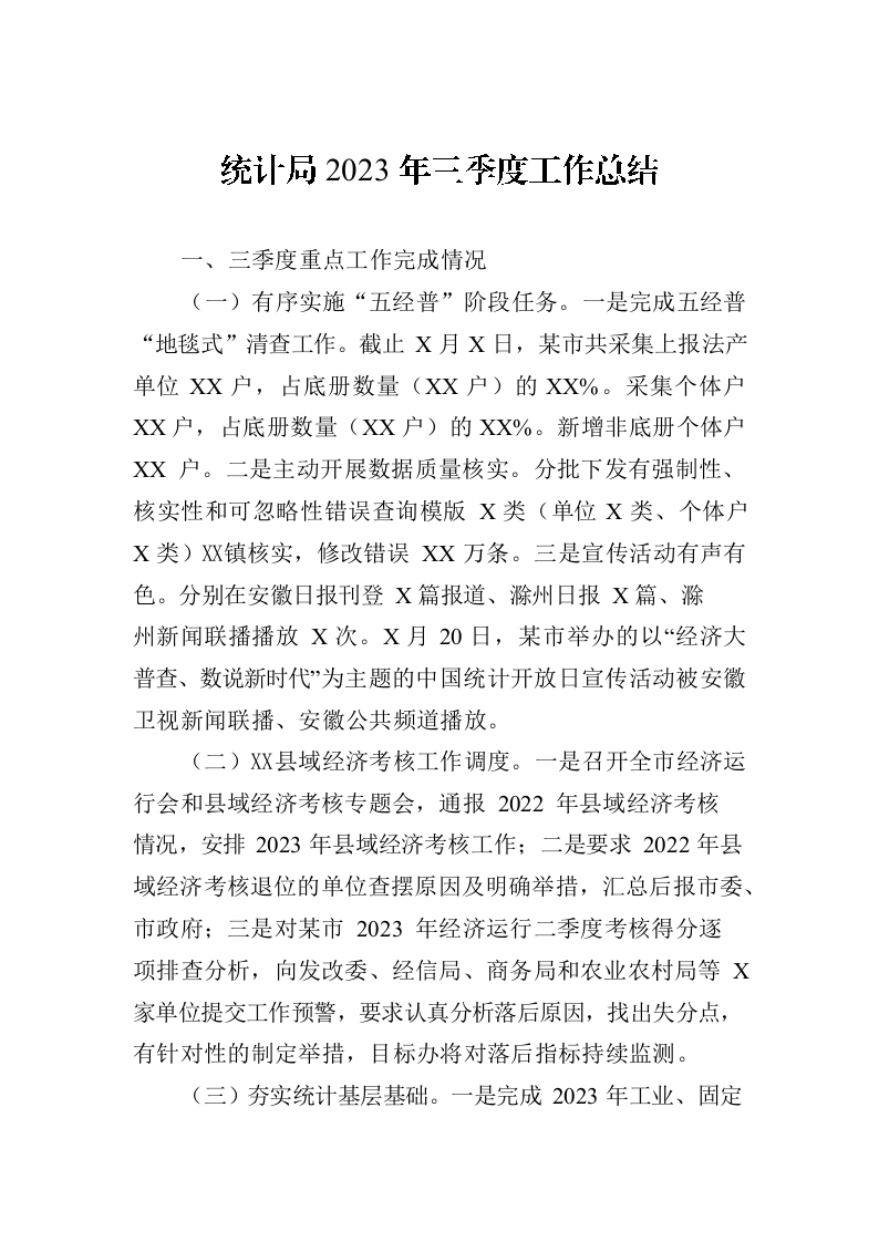 / 统计局2023年三季度工作总结(20231008)