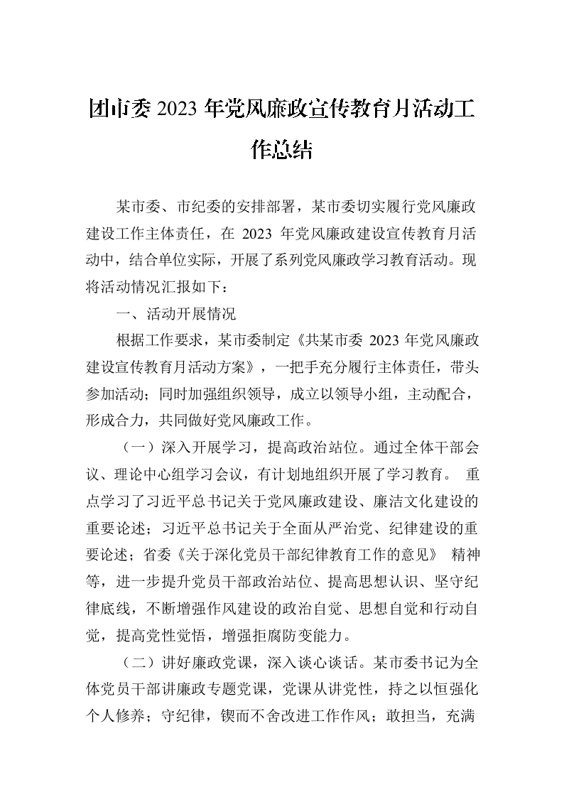 / 团市委2023年党风廉政宣传教育月活动工作总结