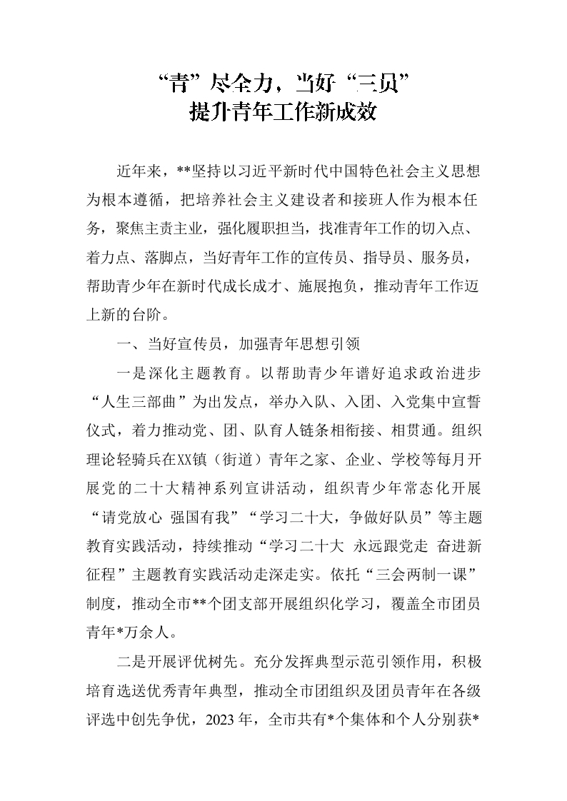 / 团委工作总结“青”尽全力,当好“三员”,提升青年工作新成效