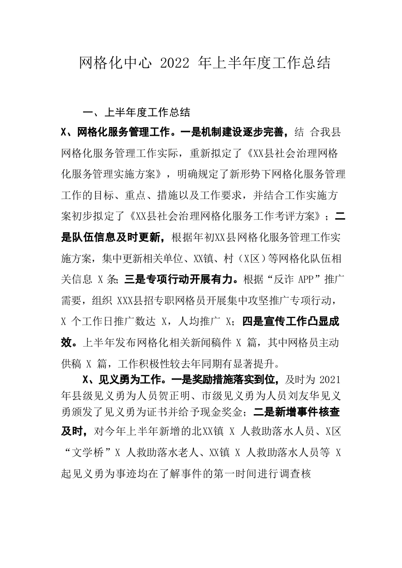 / 网格2022年上半年度工作总结