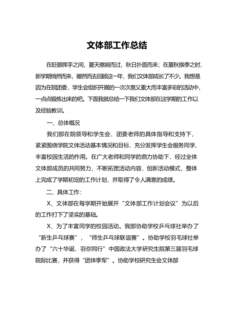 / 文体部工作总结