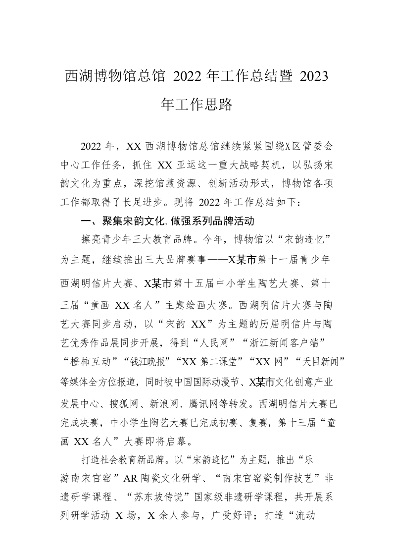 / 西湖博物馆总馆2022年工作总结暨2023年工作思路