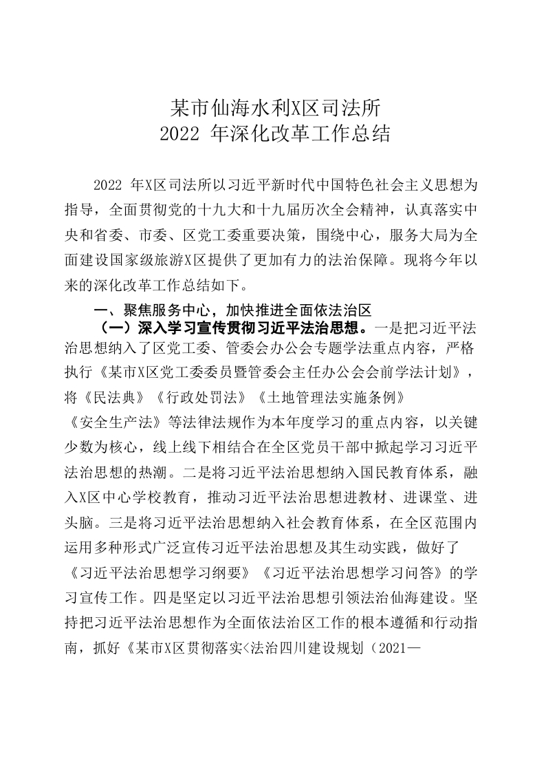 / 仙海区司法所2022年深化改革工作总结