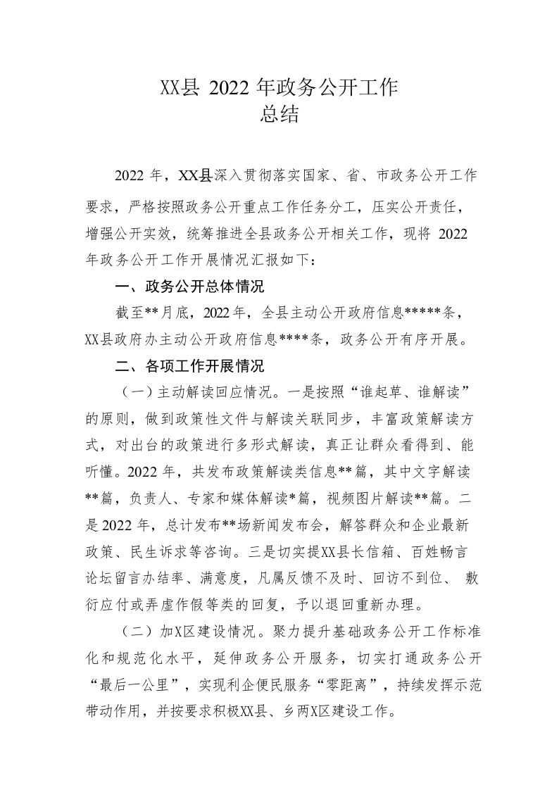 / 县2022年政务公开工作总结