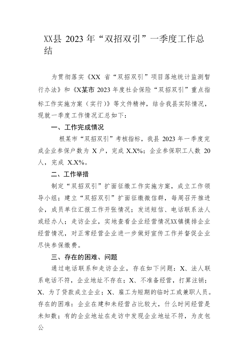 / 县2023年“双招双引”一季度工作总结(20230526)