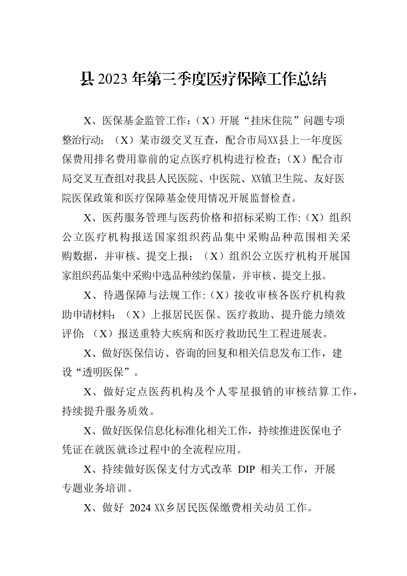 / 县2023年第三季度医疗保障工作总结(20230928)