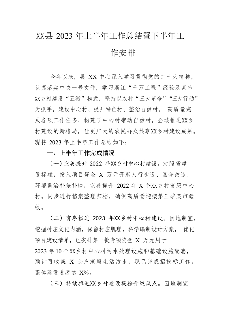 / 县2023年上半年工作总结暨下半年工作安排(20230613)