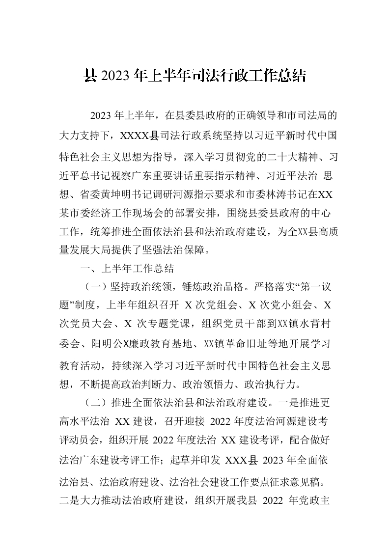 / 县2023年上半年司法行政工作总结(20230710)