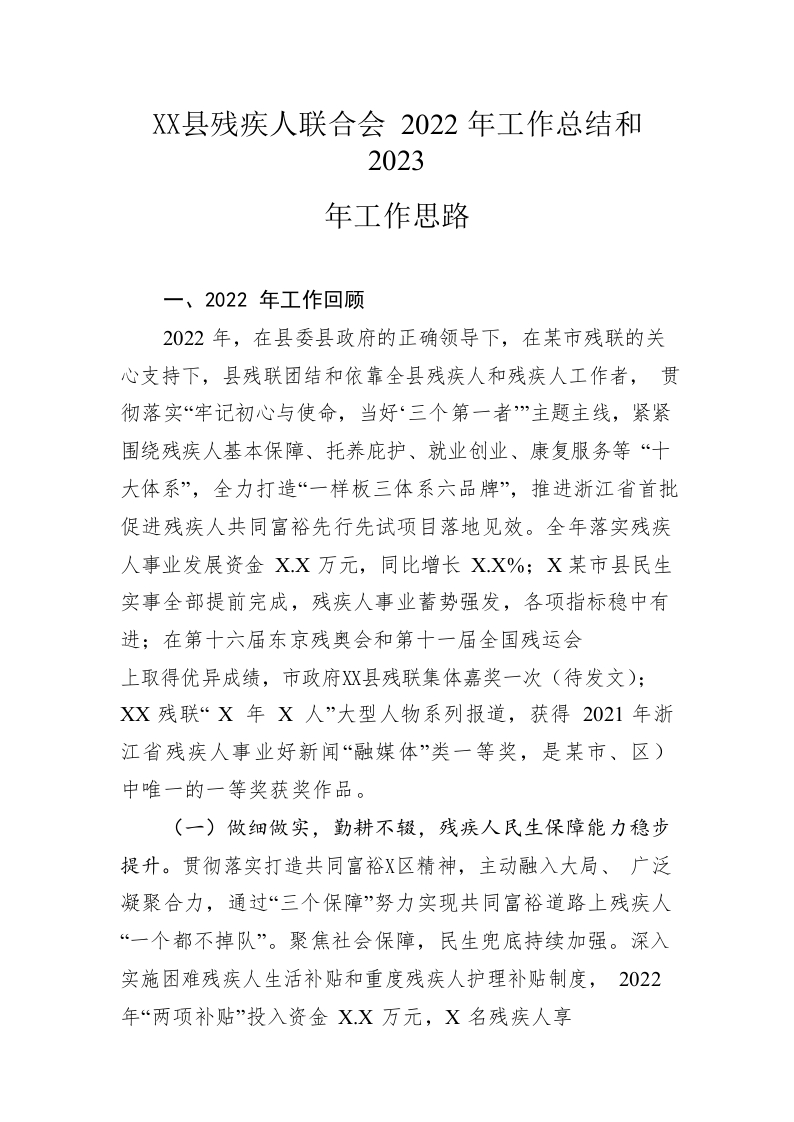 / 县残疾人联合会2022年工作总结和2023年工作思路