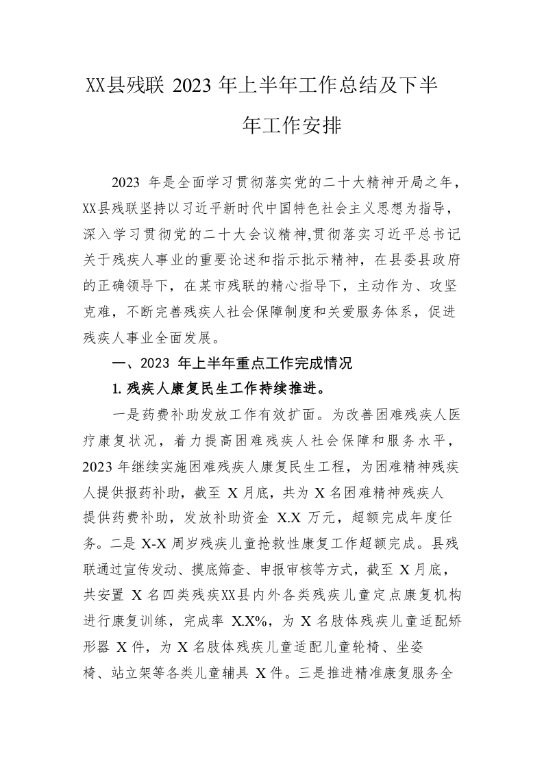 / 县残联2023年上半年工作总结及下半年工作安排(20230626)