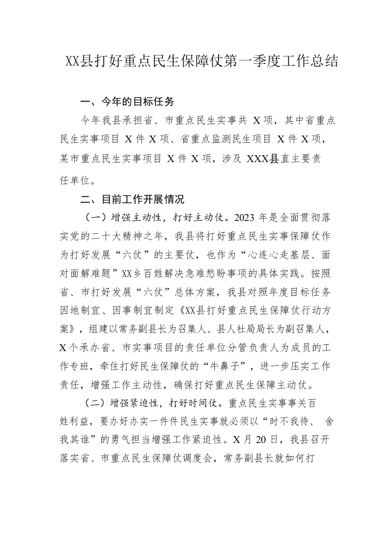 / 县打好重点民生保障仗第一季度工作总结(20230322)