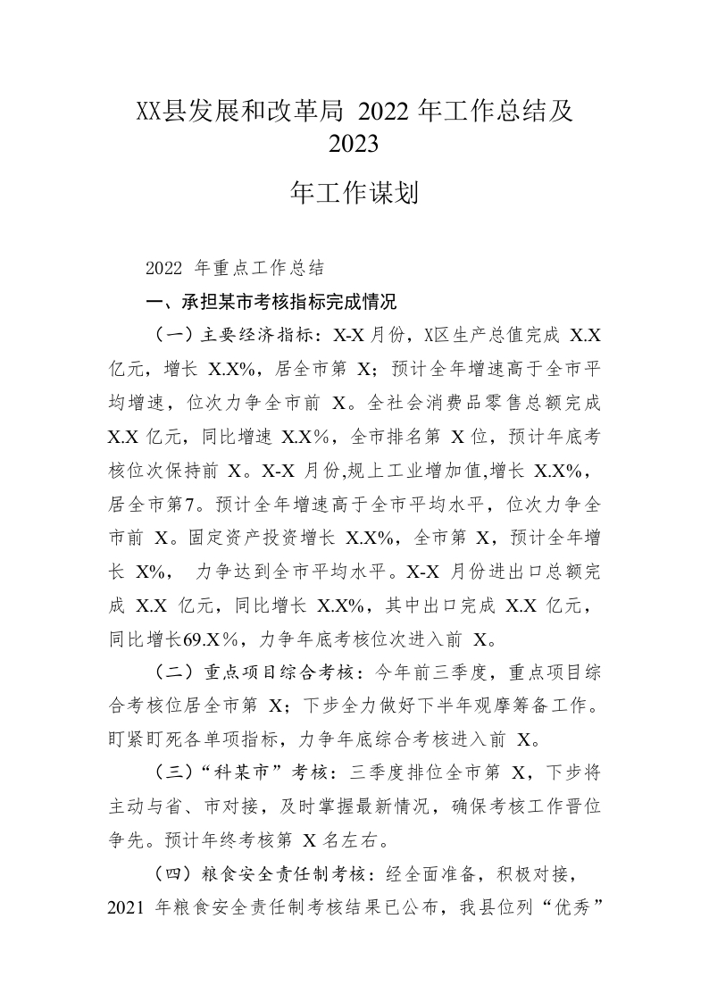/ 县发展和改革局 2022年工作总结及2023年工作谋划