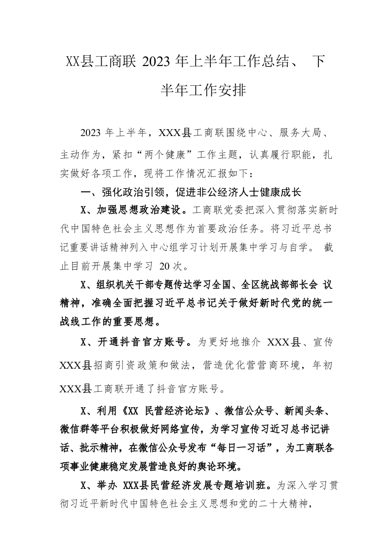 / 县工商联2023年上半年工作总结、 下半年工作安排(20230530)