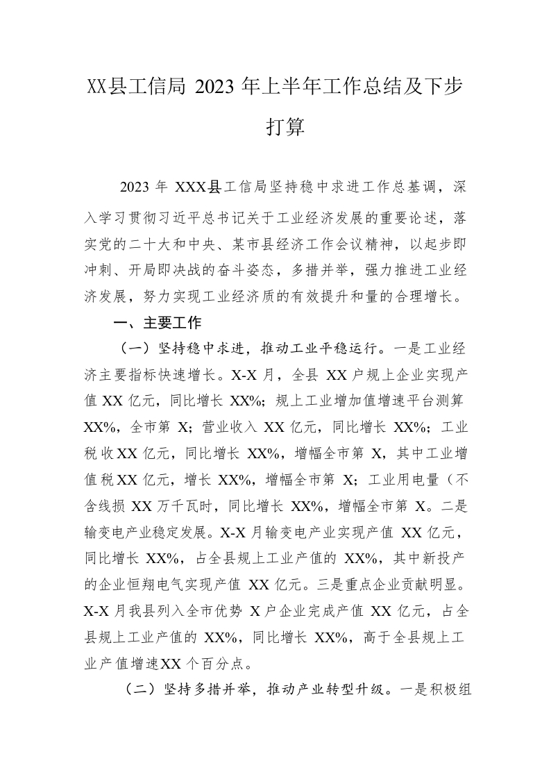/ 县工信局2023年上半年工作总结及下步打算(20230628)