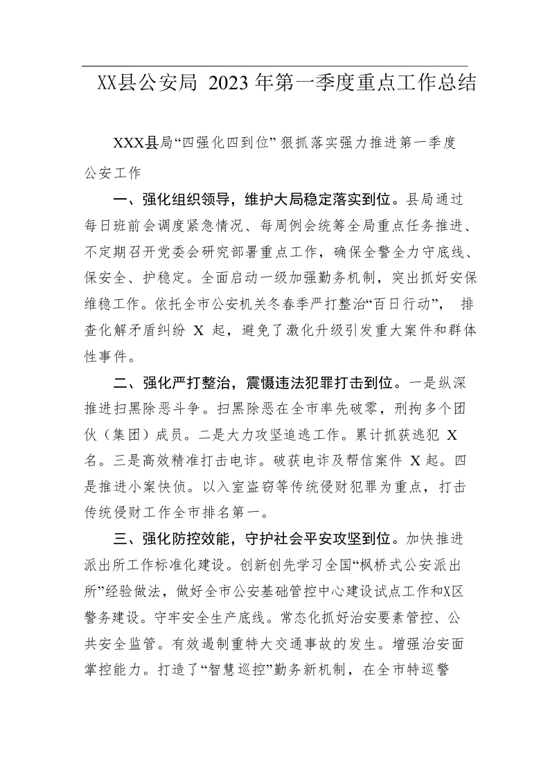 / 县公安局2023年第一季度重点工作总结(20230517)