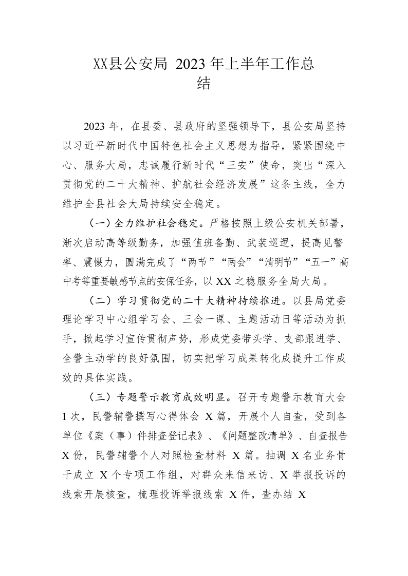 / 县公安局2023年上半年工作总结(20230627)
