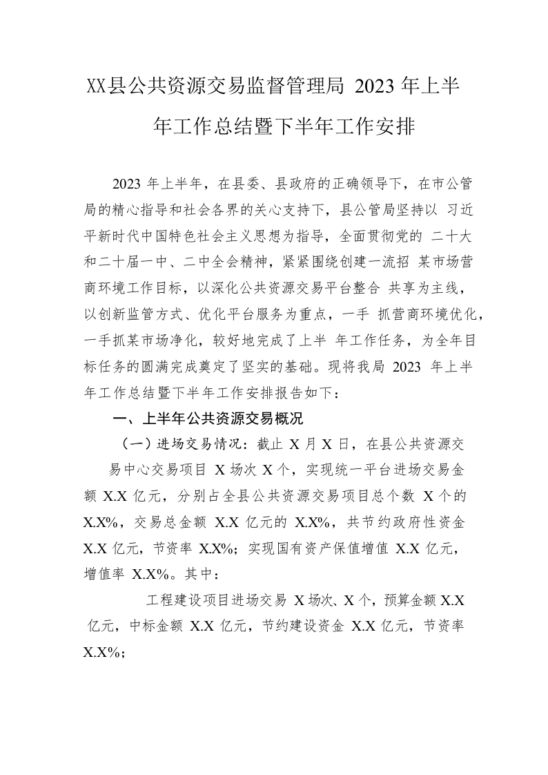 / 县公共资源交易监督管理局2023年上半年工作总结暨下半年工作安排(20230615)