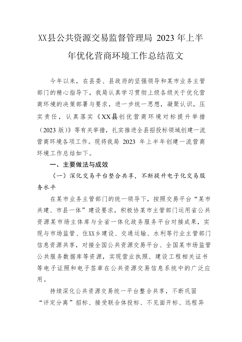 / 县公共资源交易监督管理局2023年上半年优化营商环境工作总结范文